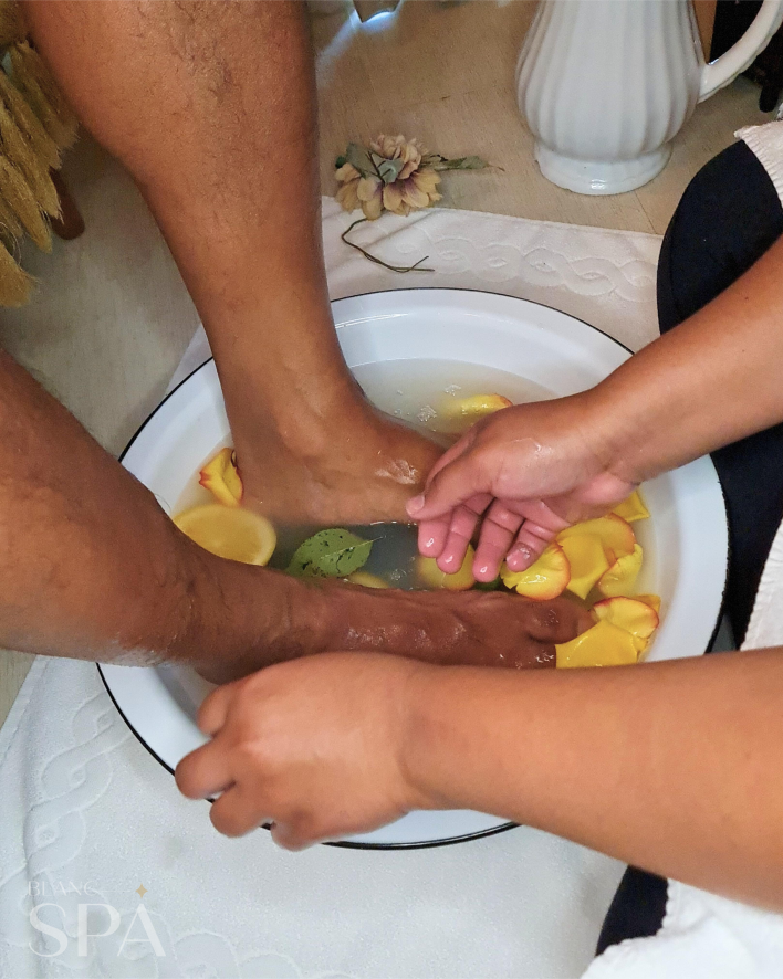 Um banho quentinho e perfumado para os pezinhos com um lanchinho delicioso para completar a experiência!