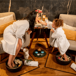 Um banho quentinho e perfumado para os pezinhos com um lanchinho delicioso para completar a experiência!