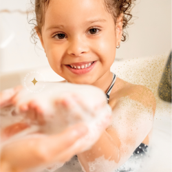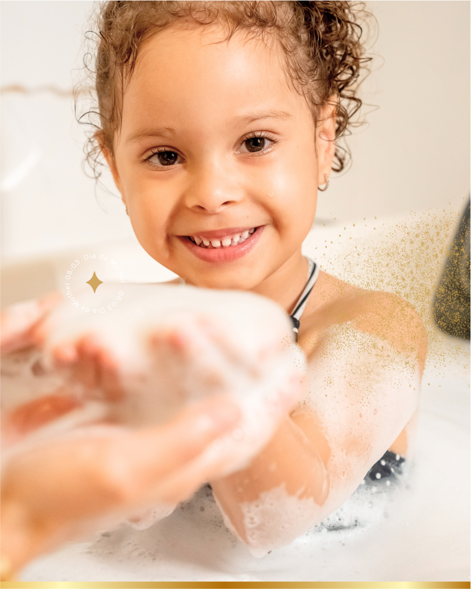 Um banho de espuma encantado, cheio de bolhinhas e muita diversão, com um picolé delicioso para refrescar!